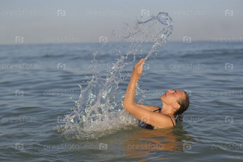 Женщина средних лет в море с брызгами воды