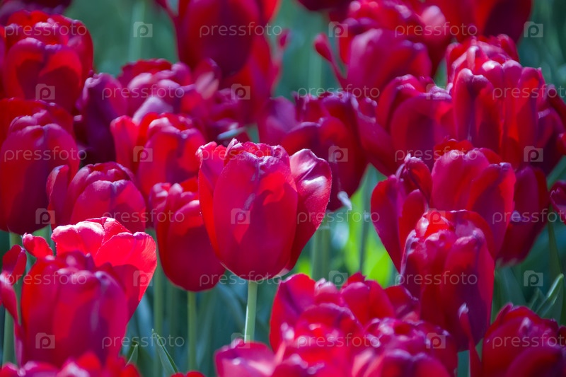 Много ярко-фиолетовых тюльпанов
