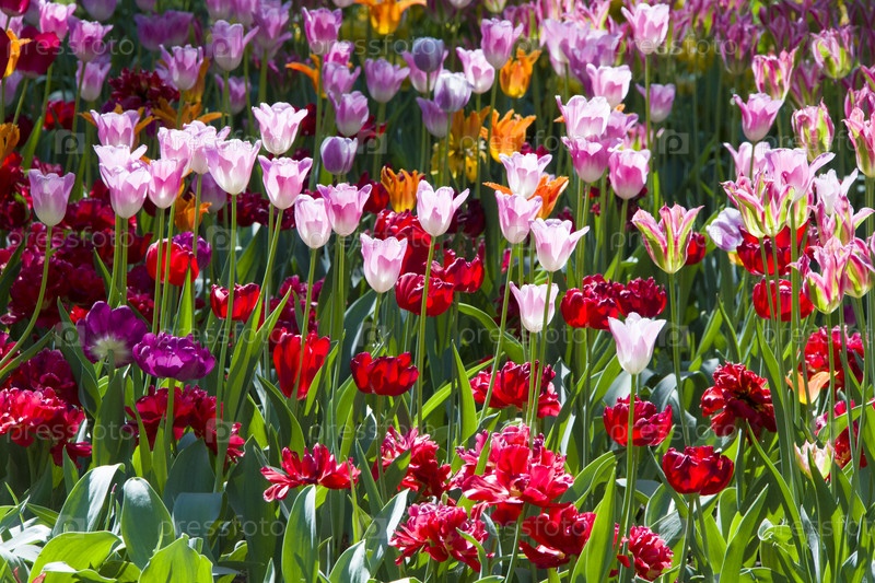 Много ярких разноцветных тюльпанов