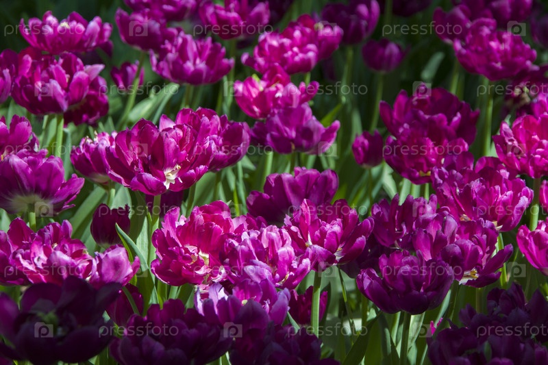 Много ярко-фиолетовых тюльпанов