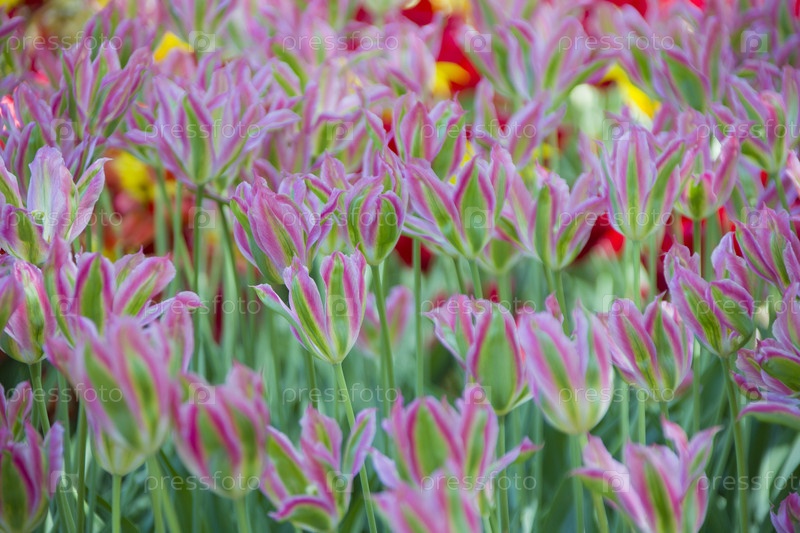 Много ярких разноцветных тюльпанов. Редкие сорта тюльпанов