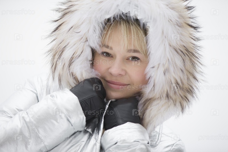 Женщина в пушистом капюшоне