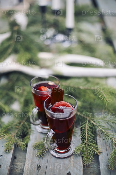 Горячий глинтвейн с цитрусовыми, яблоками, палочками корицы,