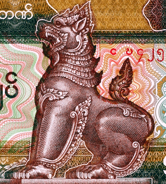 Скульптура льва на купюре 50 кьятов 1994 года из Мьянмы