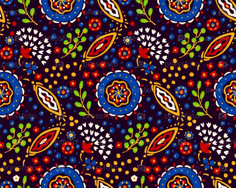Бесшовный узор с фантазийными цветами, этнический вращающийся повторяющийся дизайн ткани и плитки, натуральные обои, иллюстрация завитка цветочного декора. Пейсли печатает рисованные элементы. Домашний декор