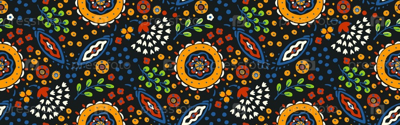 Бесшовный узор с фантазийными цветами, этнический вращающийся повторяющийся дизайн ткани и плитки, натуральные обои, иллюстрация завитка цветочного декора. Пейсли печатает рисованные элементы. Домашний декор
