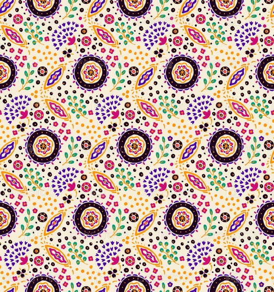 Бесшовный узор с фантазийными цветами, этнический вращающийся повторяющийся дизайн ткани и плитки, натуральные обои, иллюстрация завитка цветочного декора. Пейсли печатает рисованные элементы. Домашний декор