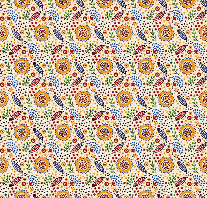 Бесшовный узор с фантазийными цветами, этнический вращающийся повторяющийся дизайн ткани и плитки, натуральные обои, иллюстрация завитка цветочного декора. Пейсли печатает рисованные элементы. Домашний декор