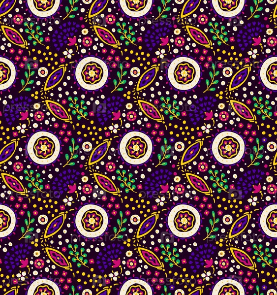 Бесшовный узор с фантазийными цветами, этнический вращающийся повторяющийся дизайн ткани и плитки, натуральные обои, иллюстрация завитка цветочного декора. Пейсли печатает рисованные элементы. Домашний декор