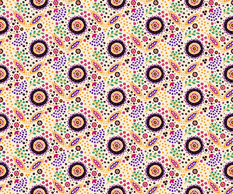 Бесшовный узор с фантазийными цветами, этнический вращающийся повторяющийся дизайн ткани и плитки, натуральные обои, иллюстрация завитка цветочного декора. Пейсли печатает рисованные элементы. Домашний декор