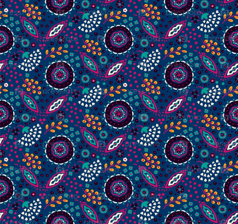 Бесшовный узор с фантазийными цветами, этнический вращающийся повторяющийся дизайн ткани и плитки, натуральные обои, иллюстрация завитка цветочного декора. Пейсли печатает рисованные элементы. Домашний декор
