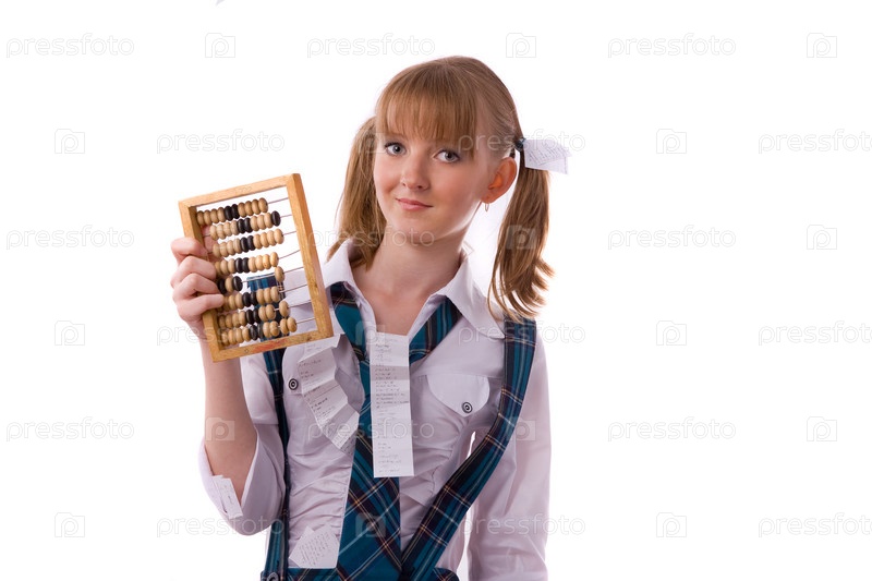 Студентка с деревянными счетами в руках
