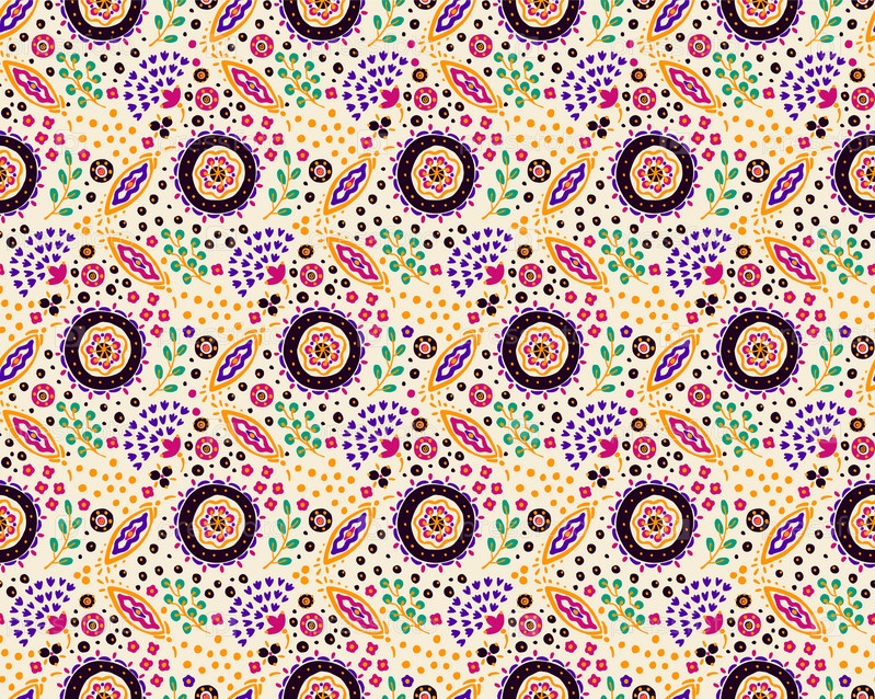 Бесшовный узор с фантазийными цветами, этнический вращающийся повторяющийся дизайн ткани и плитки, натуральные обои, иллюстрация завитка цветочного декора. Пейсли печатает рисованные элементы. Домашний декор