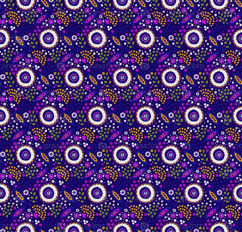 Бесшовный узор с фантазийными цветами, этнический вращающийся повторяющийся дизайн ткани и плитки, натуральные обои, иллюстрация завитка цветочного декора. Пейсли печатает рисованные элементы. Домашний декор