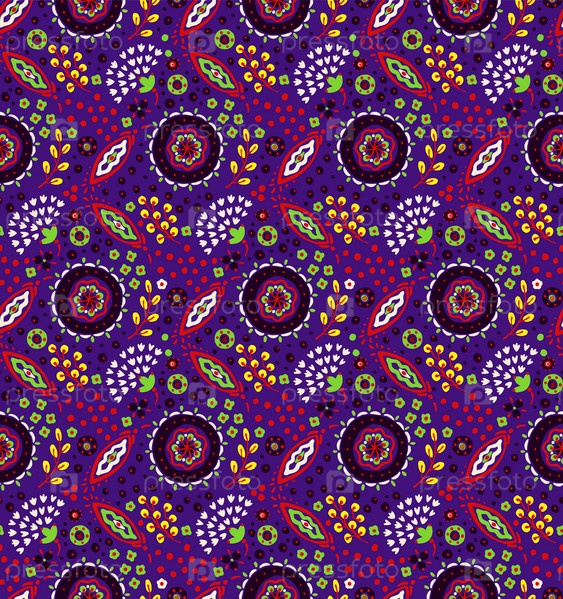 Бесшовный узор с фантазийными цветами, этнический вращающийся повторяющийся дизайн ткани и плитки, натуральные обои, иллюстрация завитка цветочного декора. Пейсли печатает рисованные элементы. Домашний декор