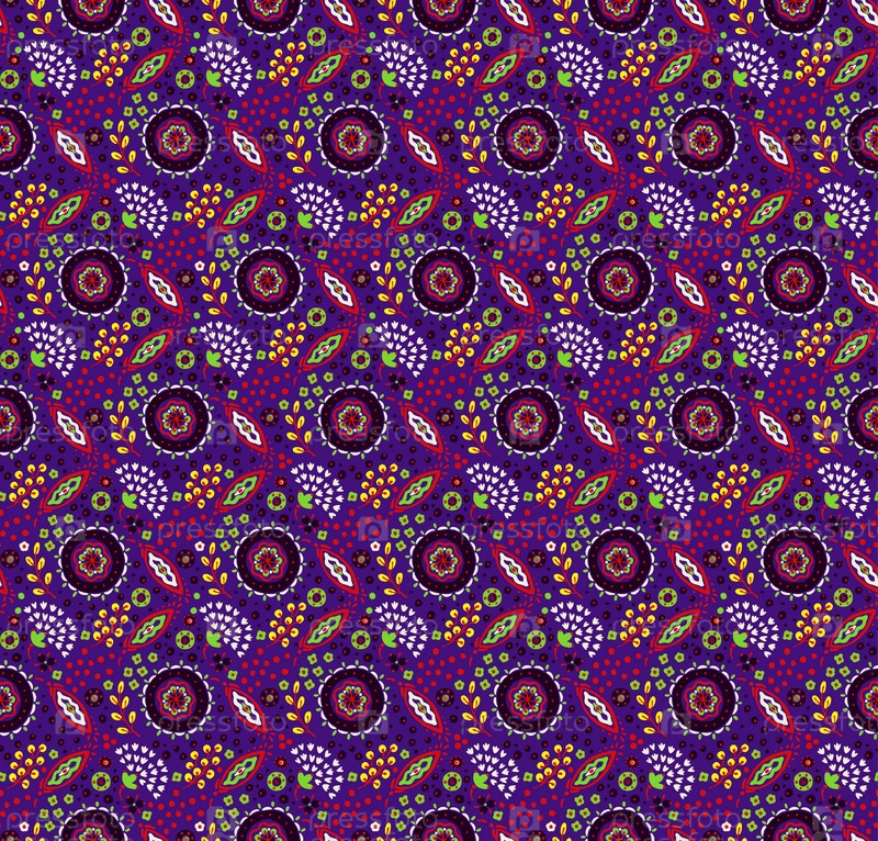 Бесшовный узор с фантазийными цветами, этнический вращающийся повторяющийся дизайн ткани и плитки, натуральные обои, иллюстрация завитка цветочного декора. Пейсли печатает рисованные элементы. Домашний декор