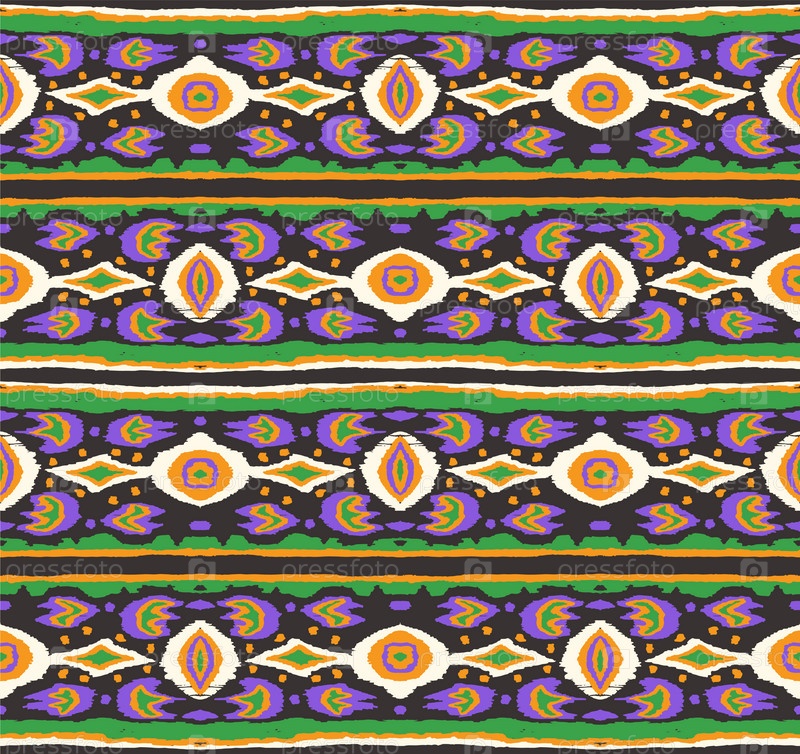 Икат геометрический фольклорный орнамент с бриллиантами. Племенная этническая векторная текстура. Бесшовный полосатый узор в стиле ацтеков. Народная вышивка. Индийский, скандинавский, цыганский, мексиканский, африканский ковер
