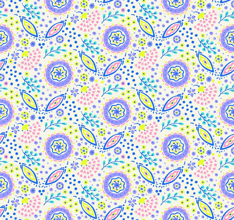 Бесшовный узор с фантазийными цветами, этнический вращающийся повторяющийся дизайн ткани и плитки, натуральные обои, иллюстрация завитка цветочного декора. Пейсли печатает рисованные элементы. Домашний декор