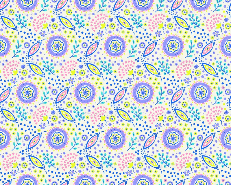 Бесшовный узор с фантазийными цветами, этнический вращающийся повторяющийся дизайн ткани и плитки, натуральные обои, иллюстрация завитка цветочного декора. Пейсли печатает рисованные элементы. Домашний декор
