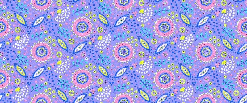 Бесшовный узор с фантазийными цветами, этнический вращающийся повторяющийся дизайн ткани и плитки, натуральные обои, иллюстрация завитка цветочного декора. Пейсли печатает рисованные элементы. Домашний декор