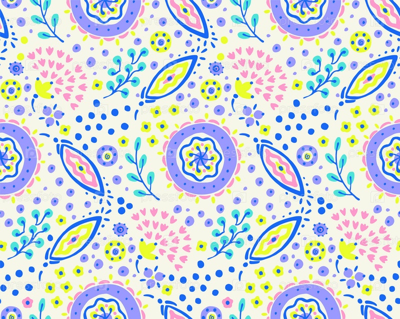 Бесшовный узор с фантазийными цветами, этнический вращающийся повторяющийся дизайн ткани и плитки, натуральные обои, иллюстрация завитка цветочного декора. Пейсли печатает рисованные элементы. Домашний декор