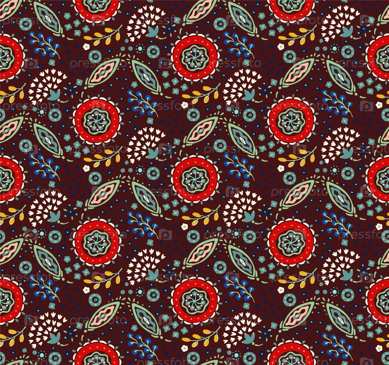 Бесшовный узор с фантазийными цветами, этнический вращающийся повторяющийся дизайн ткани и плитки, натуральные обои, иллюстрация завитка цветочного декора. Пейсли печатает рисованные элементы. Домашний декор