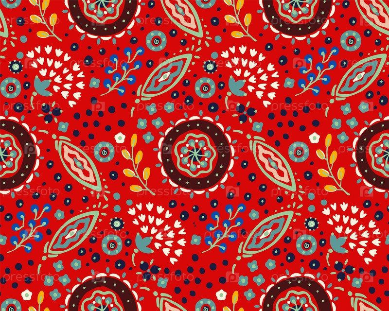 Бесшовный узор с фантазийными цветами, этнический вращающийся повторяющийся дизайн ткани и плитки, натуральные обои, иллюстрация завитка цветочного декора. Пейсли печатает рисованные элементы. Домашний декор