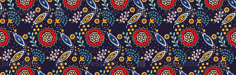 Бесшовный узор с фантазийными цветами, этнический вращающийся повторяющийся дизайн ткани и плитки, натуральные обои, иллюстрация завитка цветочного декора. Пейсли печатает рисованные элементы. Домашний декор