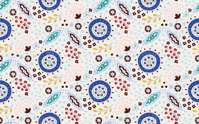 Бесшовный узор с фантазийными цветами, этнический вращающийся повторяющийся дизайн ткани и плитки, натуральные обои, иллюстрация завитка цветочного декора. Пейсли печатает рисованные элементы. Домашний декор