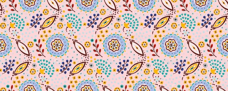 Бесшовный узор с фантазийными цветами, этнический вращающийся повторяющийся дизайн ткани и плитки, натуральные обои, иллюстрация завитка цветочного декора. Пейсли печатает рисованные элементы. Домашний декор