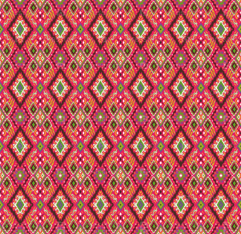 Икат геометрический фольклорный орнамент с бриллиантами. Племенная этническая векторная текстура. Бесшовный полосатый узор в стиле ацтеков. Народная вышивка. Индийский, скандинавский, цыганский, мексиканский, африканский ковер