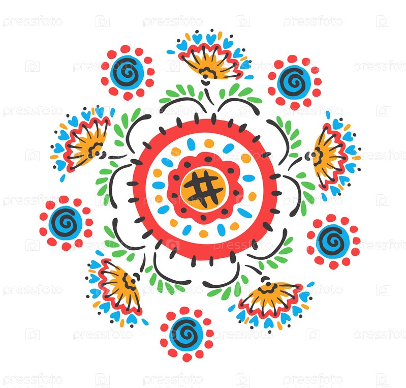 Набор этнических элементов. Бордюр представляет собой полосу с цветами, листьями, ветками, вензелями. Народная вышивка. Славянский, украинский, русский мотив. Хохлома, матрешка, дымковская игрушка. Мексиканский, индийский, цыганский ковер. Вязаное кружево