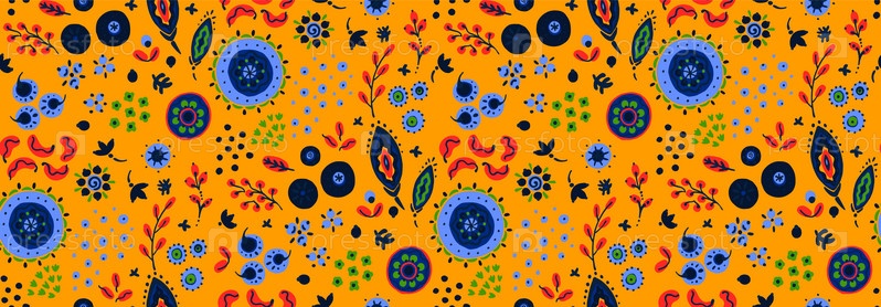 Бесшовный узор с фантазийными цветами, этнический вращающийся повторяющийся дизайн ткани и плитки, натуральные обои, иллюстрация завитка цветочного декора. Пейсли печатает рисованные элементы. Домашний декор