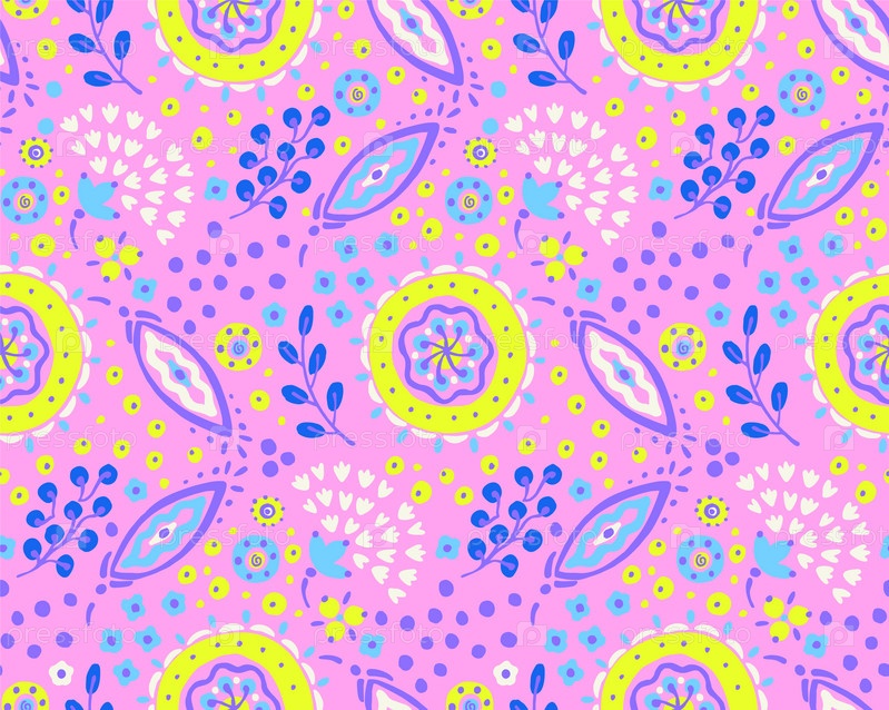 Бесшовный узор с фантазийными цветами, этнический вращающийся повторяющийся дизайн ткани и плитки, натуральные обои, иллюстрация завитка цветочного декора. Пейсли печатает рисованные элементы. Домашний декор