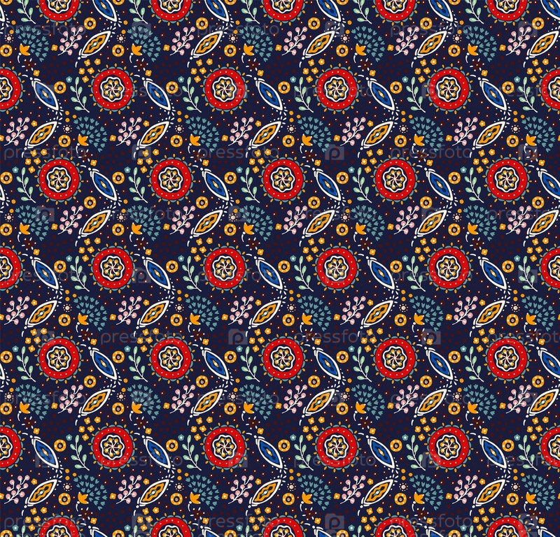 Бесшовный узор с фантазийными цветами, этнический вращающийся повторяющийся дизайн ткани и плитки, натуральные обои, иллюстрация завитка цветочного декора. Пейсли печатает рисованные элементы. Домашний декор