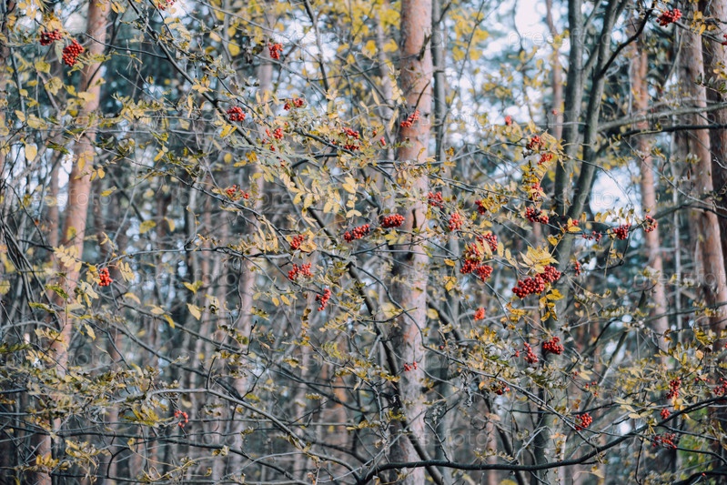 Рябина, осенний фон