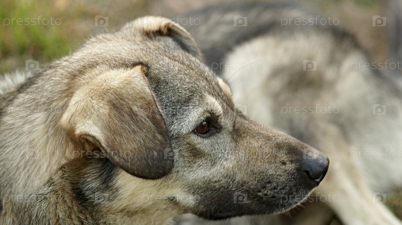 Собака лежит и смотрит