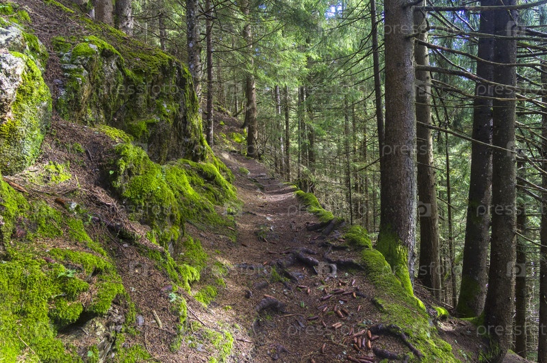 Тропа на горном склоне. Австрийские Альпы, Тироль, окрестности горнолыжного курорта Майрхофен