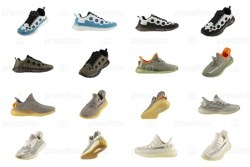 Коллаж кроссовок. Варианты кроссовок на белом фоне
