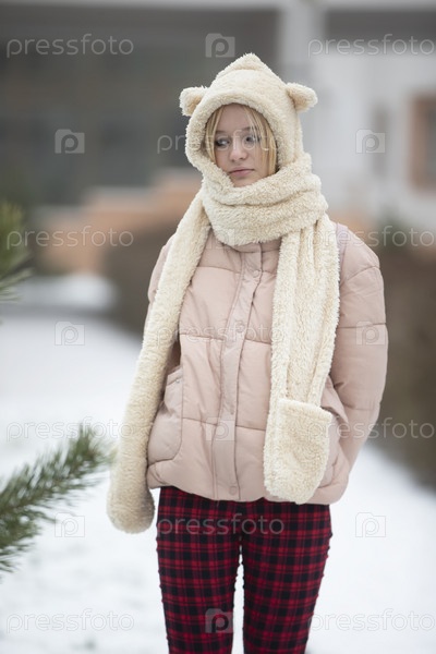 Девочка-подросток в полный рост на фоне зимы