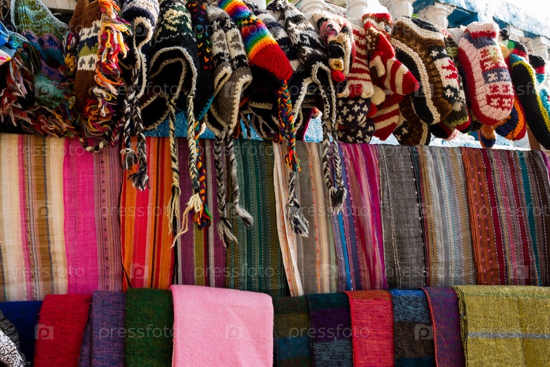 Шляпы, шарфы, варежки, носки на уличном рынке в маленькой деревне, Непал