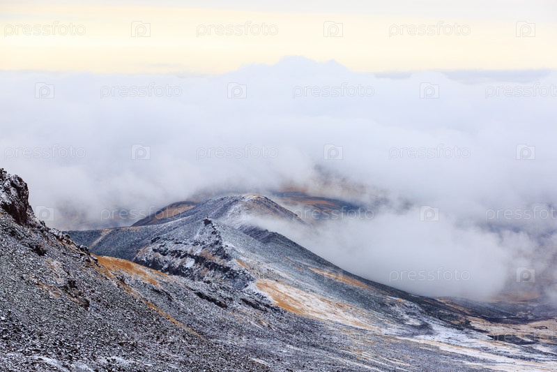 Вид из кратера горы Арагац, северная вершина, высота 4090 м, Армения