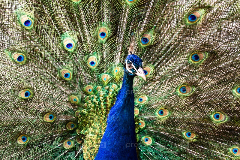 Красивый красочный индийский павлин. Крупный план изображения птицы павлина