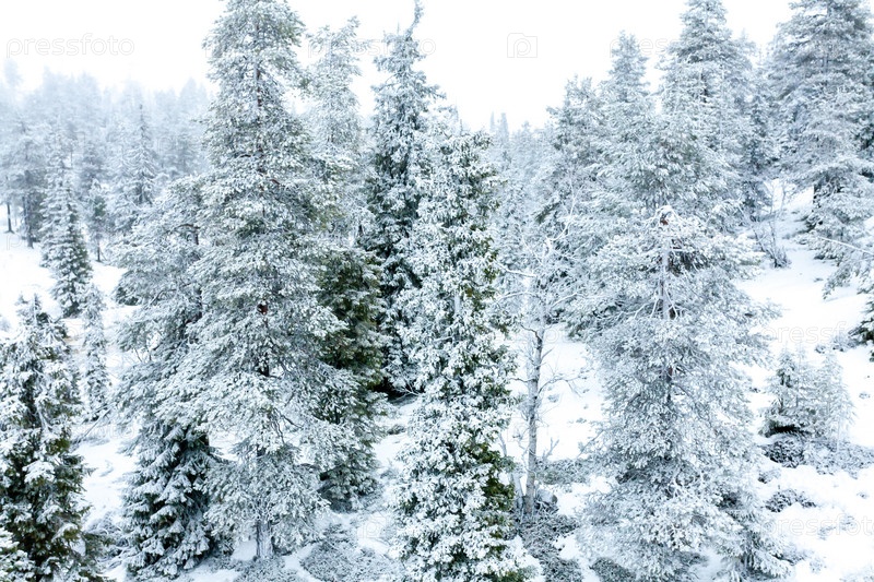 Снежный пейзаж с елями, покрытыми снегом