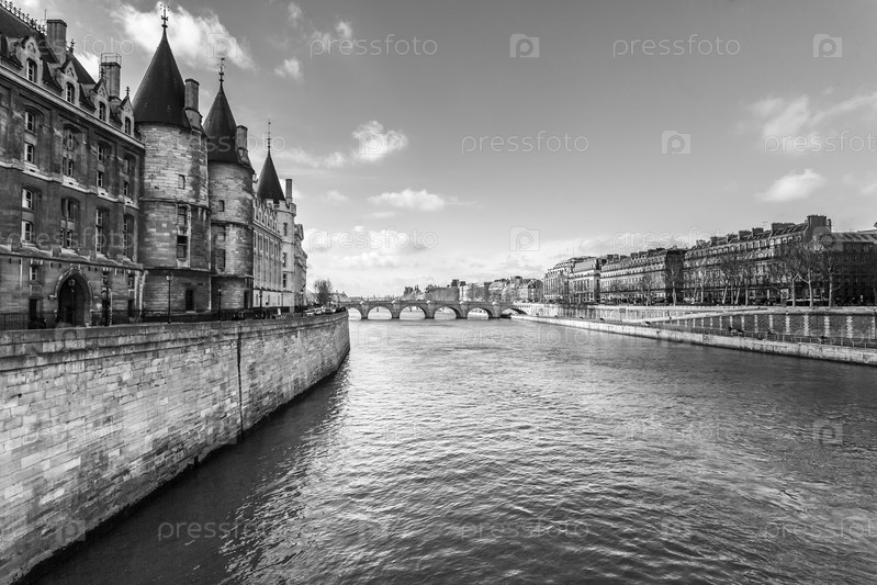 Каменная набережная реки Сены в центре Парижа, Франции, Европы