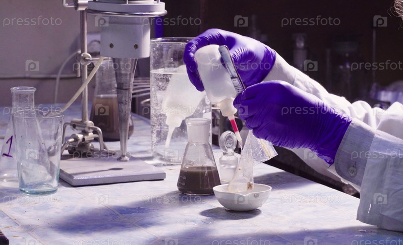 Руки ученого моют пакетик