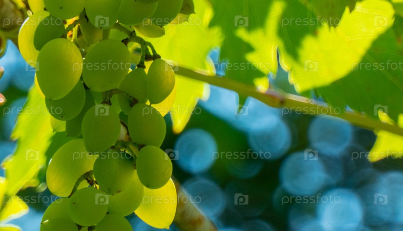 Спелый зеленый виноград в винограднике. Виноград зеленый вкус сладкий растущий натуральный. Зеленый виноград на лозе в саду