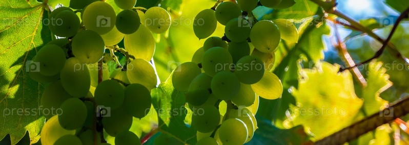 Спелый зеленый виноград в винограднике. Виноград зеленый вкус сладкий растущий натуральный. Зеленый виноград на лозе в саду