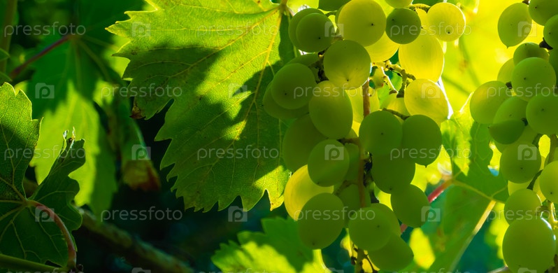 Спелый зеленый виноград в винограднике. Виноград зеленый вкус сладкий растущий натуральный. Зеленый виноград на лозе в саду