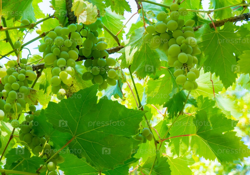 Спелый зеленый виноград в винограднике. Виноград зеленый вкус сладкий растущий натуральный. Зеленый виноград на лозе в саду